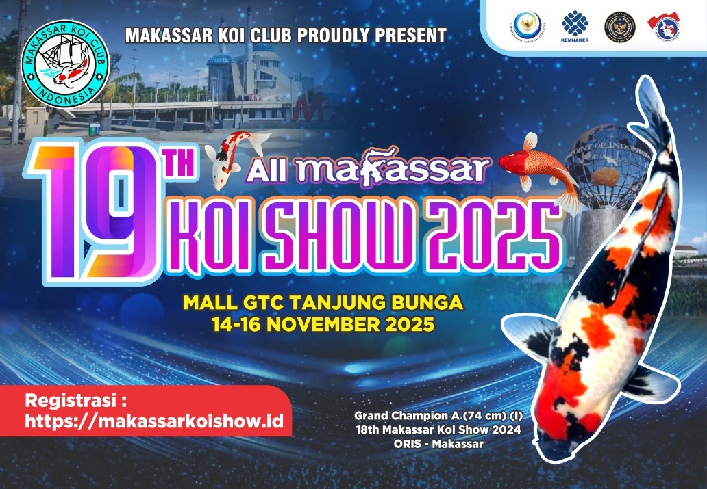 Makassar koi club kembali mempersembahkan sebuah event kontes koi bertema "19th All Makassar Koi Show 2025". Menyemarakkan kembali gelaran kontes koi nasional di tahun ini.